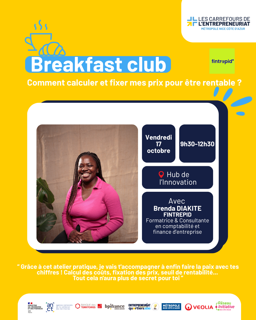 BREAKFAST CLUB - Carrefour de l'EntrepreneuriatVendredi 17 octobre 2025au Hub de l'Innovation ▶ Ouvert à tous |